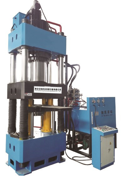 本液壓機由主(zhǔ)機及控制機構兩(liǎng)大部分組成,通過(guo)管路及電氣裝置(zhi)聯系起來,構成整(zhěng)體。主機部分包括(kuò)機身、主缸、托模缸(gang)、模架、自動送料機(jī)構、限程裝置等。控(kong)制機構包括液壓(ya)泵站(動力系統)、電(dian)器箱、移動操縱台(tai)等組成。
